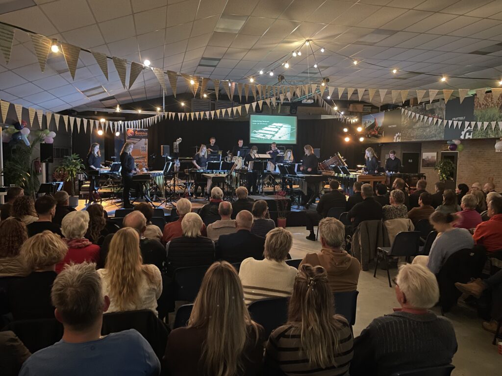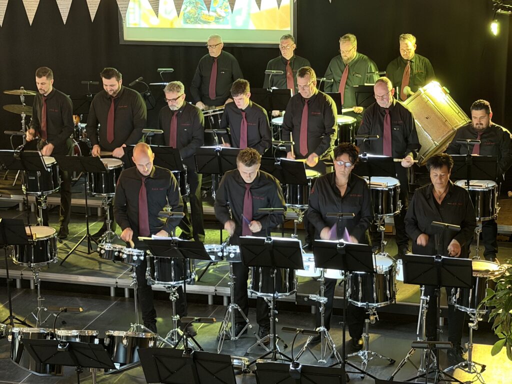 Op zondag ging het muzikale feest vrolijk verder. De fanfare vulde de zaal met bekende hits als Leef, Het is een nacht en muziek van Total Toto. Ook de slagwerkgroep liet van zich horen met een aantal swingende nummers tussendoor.